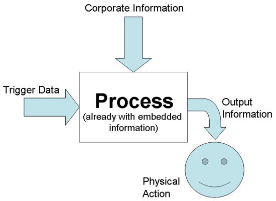 As can be seen from the diagram, the process already has information embedded within it, as this will enable it to process the incoming data and transform it into a practical physical action. Corporate information is considered most important by the company.