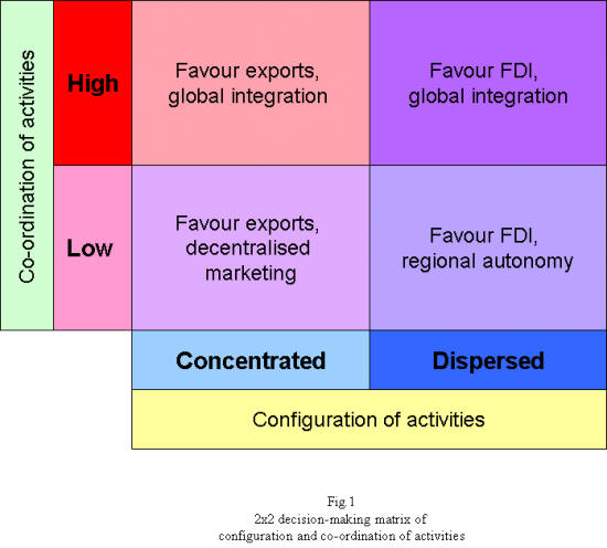 2x2 matrixTo assist decision-making when internationalising, firms can benefit from considering the effects of co-ordination and configuration of activities.